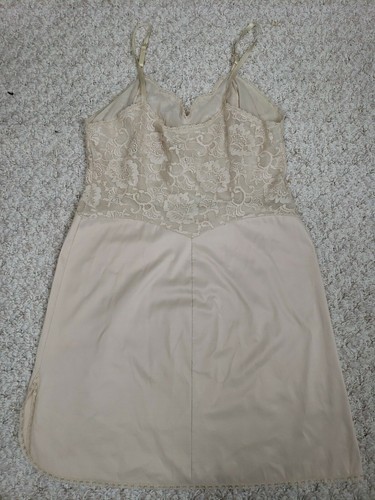 Vtg Vanity Fair Full Slip Dress Womens 38 S Silky Nude Lace Nylon Lingerie USA