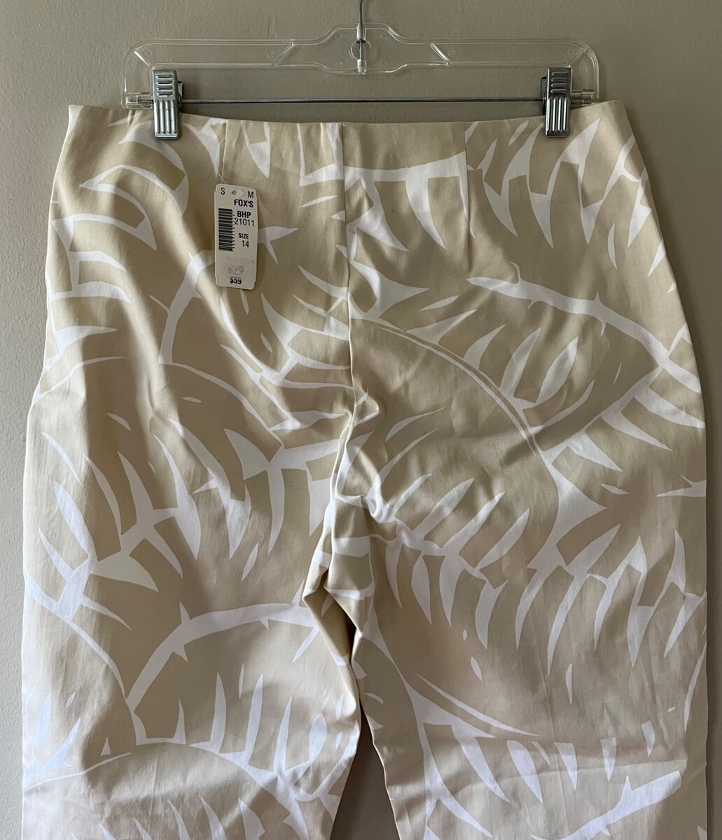 Bahama Hand Prints Sz 14 Stretch Pull On Cream Palm Print Capri Pants