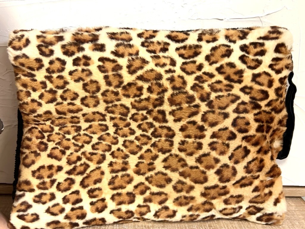 Vintage 30s 40s Fur Hand Muff Purse Matching Hat !! Not Rabbit!! Some type of super soft fur, in animal print... Large muff with fur front and black wool back and zipper compartment. The pillbox hat matches, and has a black satin top.