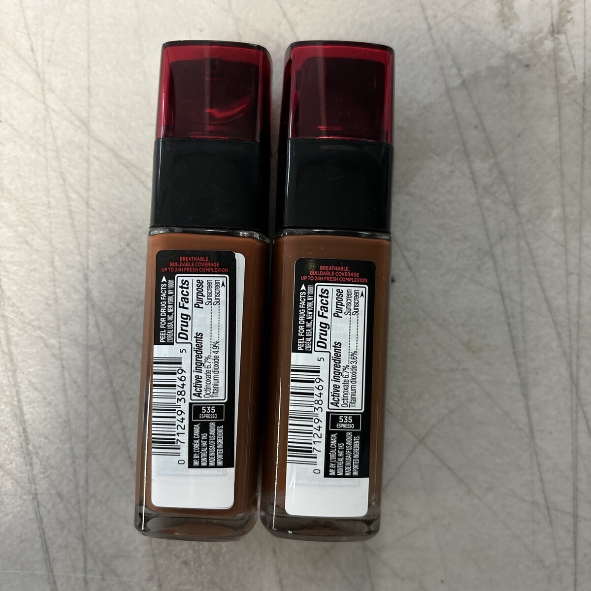 Lot of 2 -LOREAL Infallible 32hr Fresh Wear Foundation 535 Espresso 1.0 fl oz