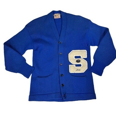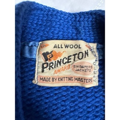 VTG Princeton Wool Letter Sweater Jacket Royal Blue Knitting Masters Football Sz