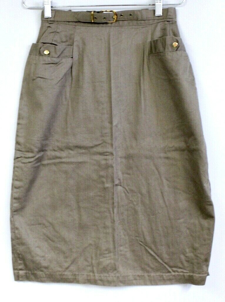 VTG 1950s Taupe Cotton Pencil Skirt Back Metal Zip Belt Kickpleat Womens S 28W