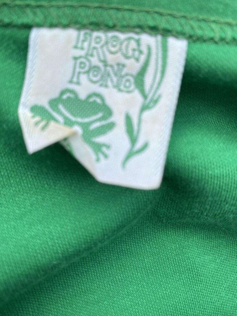 The Frog Pond was a small American label known in the 1970s for playful, appliqued casualwear. Sets like this were marketed to young women as cheerful, easy-care separates for school, work, or leisure. Applique designs of fruits, animals, and whimsical motifs were part of the larger wearable art movement of the 1970s, blending craft and fashion.