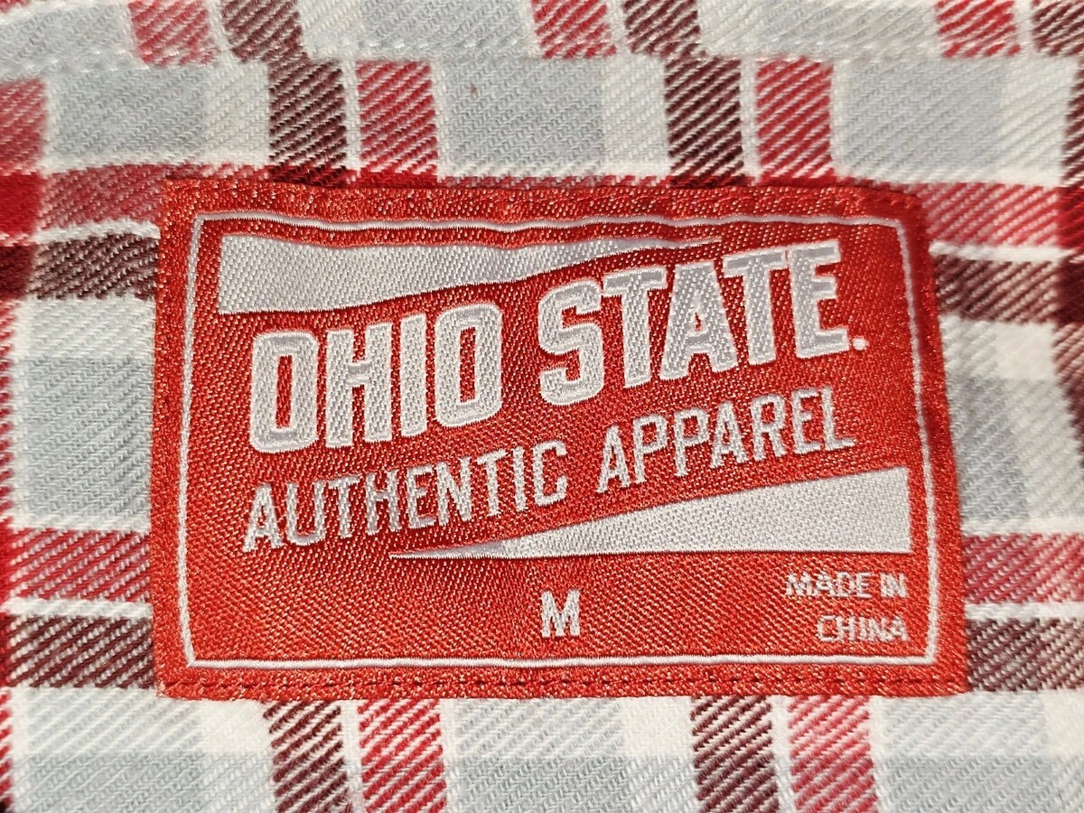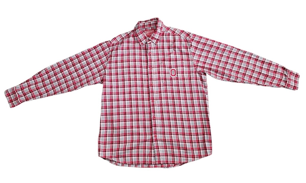 Ohio State Buckeyes Scarlet & Gray Plaid Flannel Button-Up Shirt Men’s Medium
