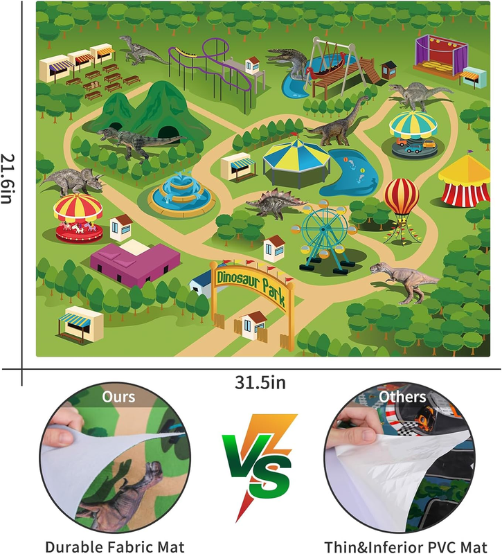 Dinosaur Theme Play Mat: A dinosaur park activity play mat help kids to build their own dinosaur world easily. Mat size(31.5x21.6in) is large enough for 2-3 kids to play on the mat at the same time to enjoy the fun of interactive games of Dinosaur carrier