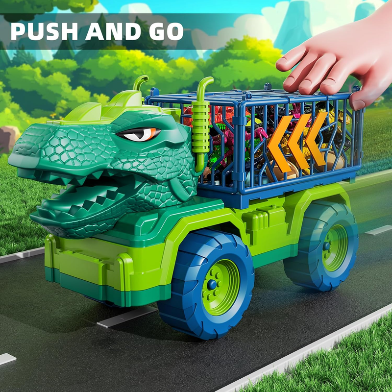 Large Dinosaur Transport Truck: The truck is equipped with a simulated tyrannosaurus head which makes it look cooler and lively, which will bring much fun for the kids of ages 3 4 5 6 years old. And the large cage allows it to capture more dinosaur toys