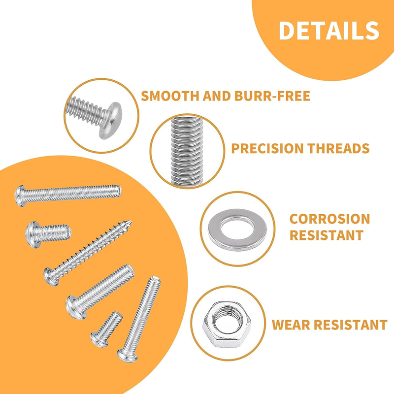 Easy to Use: These assorted nuts and bolts and washers sets are easy to use. Our screw thread is smooth, clean, and accurate. And the compact thread is not easy to out of shape and slid in the process of rolling.