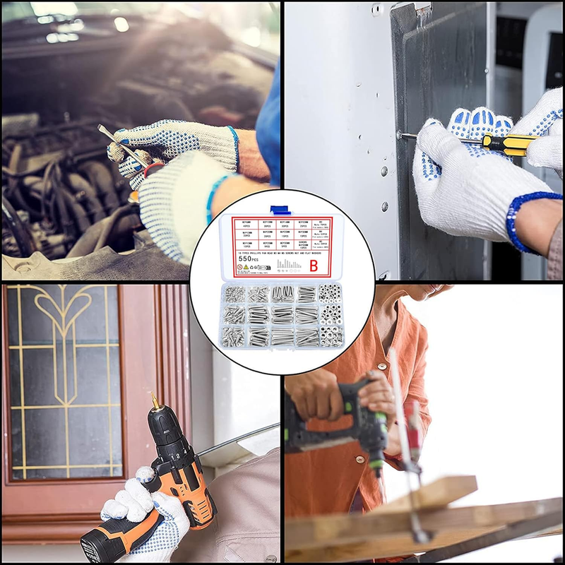 Package Includes: You will get 12 kinds of screws, in the size of m3, m4, m5; 3 kinds of nuts, and 3 kinds of washers; a total of 480g/550 pcs, enough for daily use, and meet your different needs in daily life.(Please check the product details for the quantity corresponding to the specific size.)