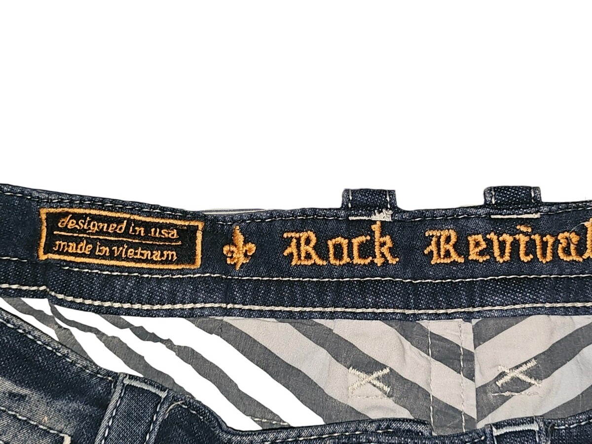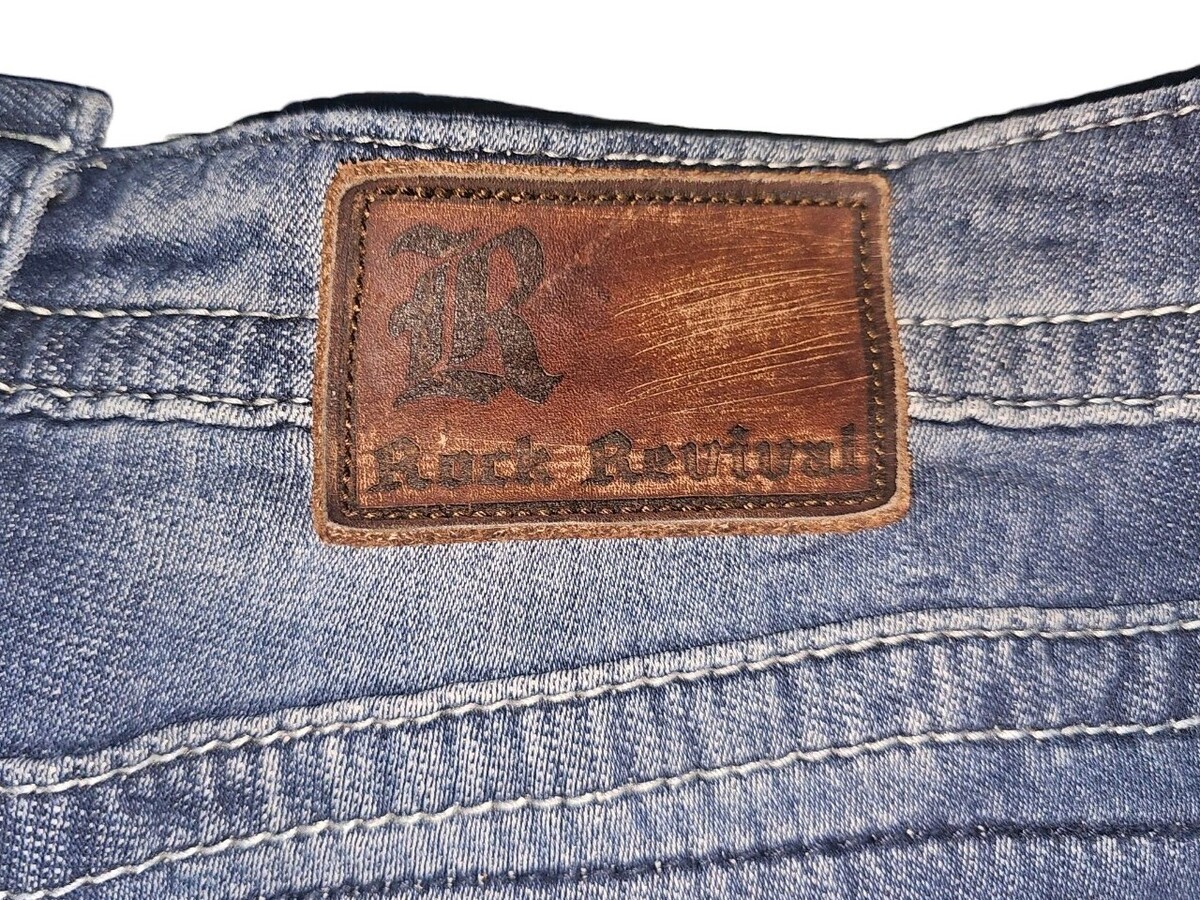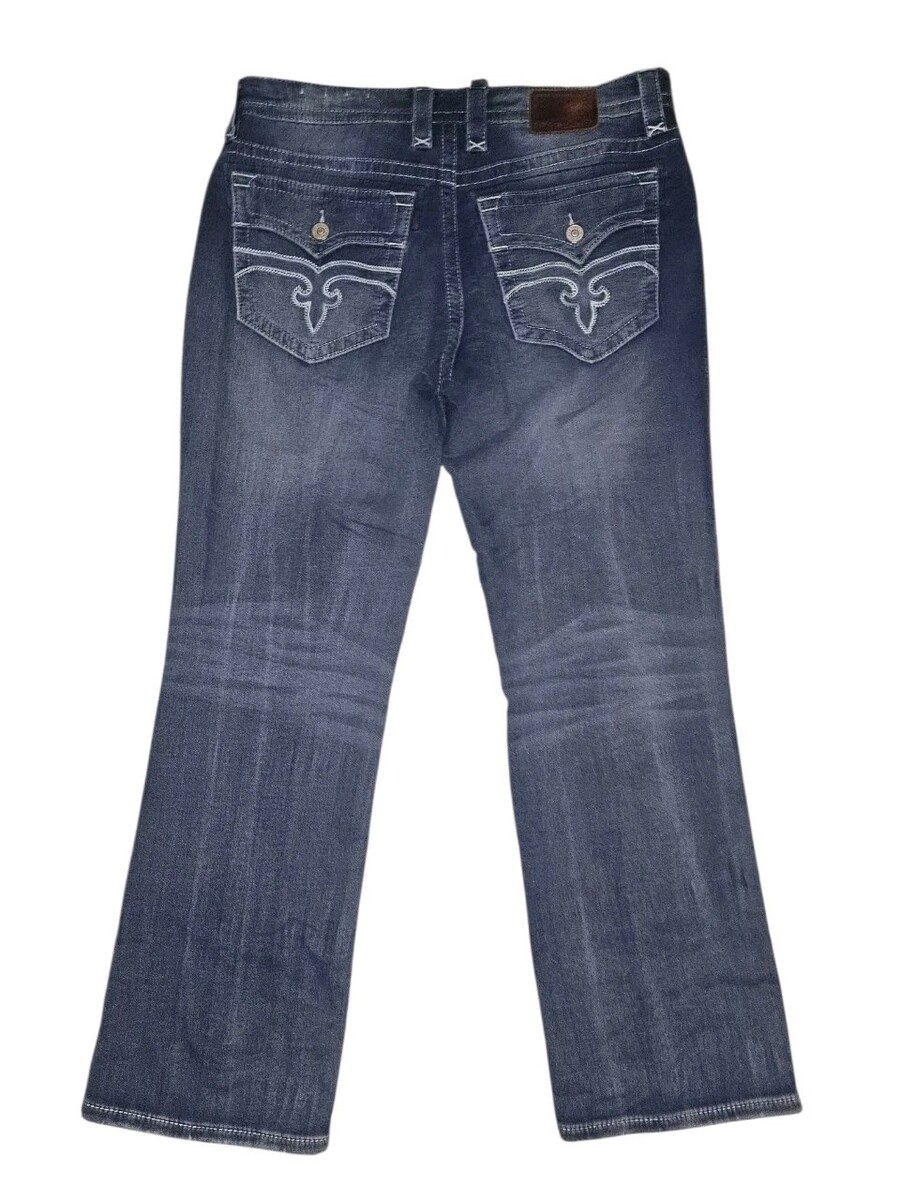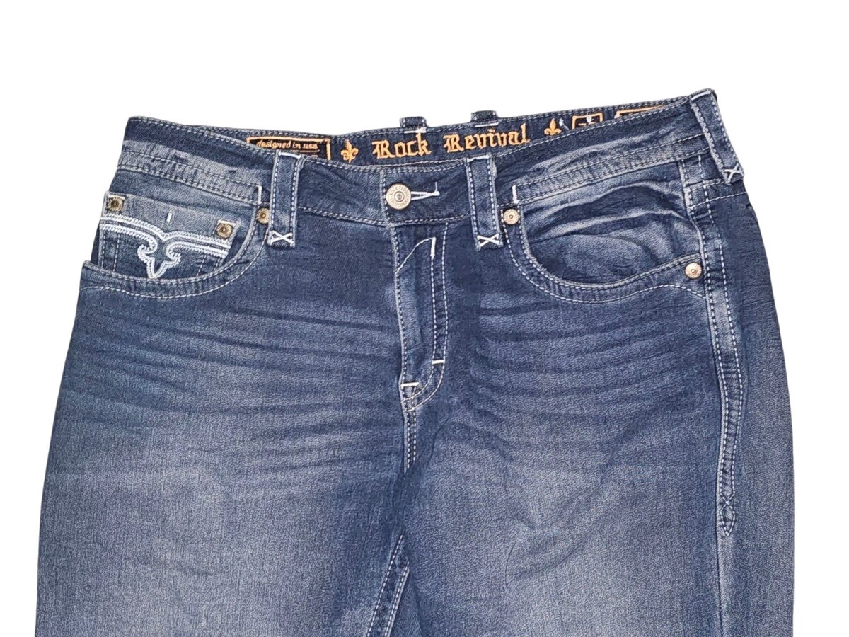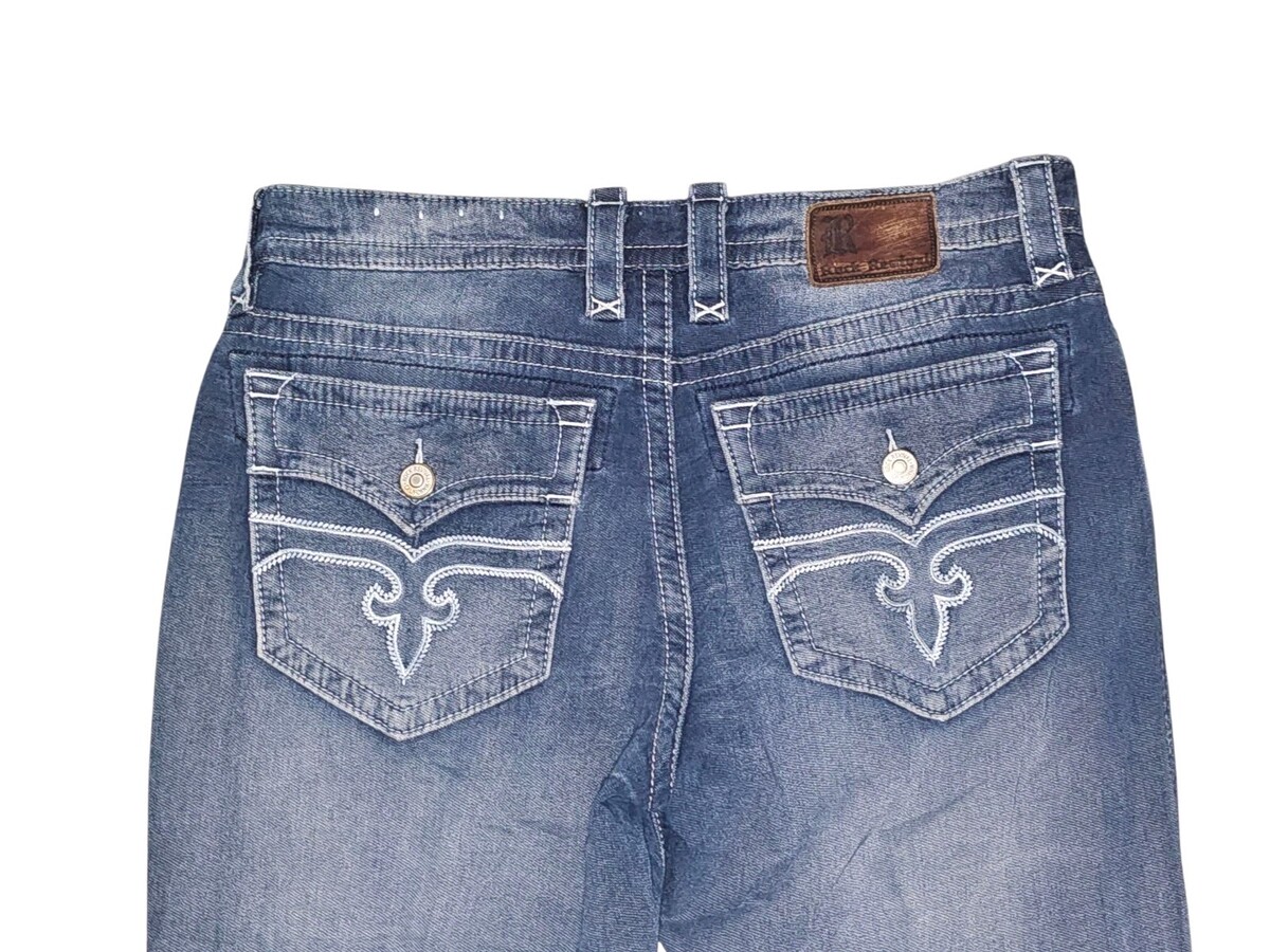 The Vintage Rock Revival Layne Relaxed Straight Y2k Denim Pants in Men's Size 36x31 are a stylish and unique addition to any wardrobe. Made from solid blue denim with a light wash, these pants feature a relaxed fit and a mid-rise waist. The pants are adorned with embroidered logos and button accents, adding a touch of edgy flair. With a 5-pocket design and a straight leg style, these jeans are perfect for those looking for a slimming and stretchy option for everyday wear. Perfect for fans of biker, rock, and cowboy themes, these vintage-inspired pants from Rock Revival are a must-have for any denim enthusiast.