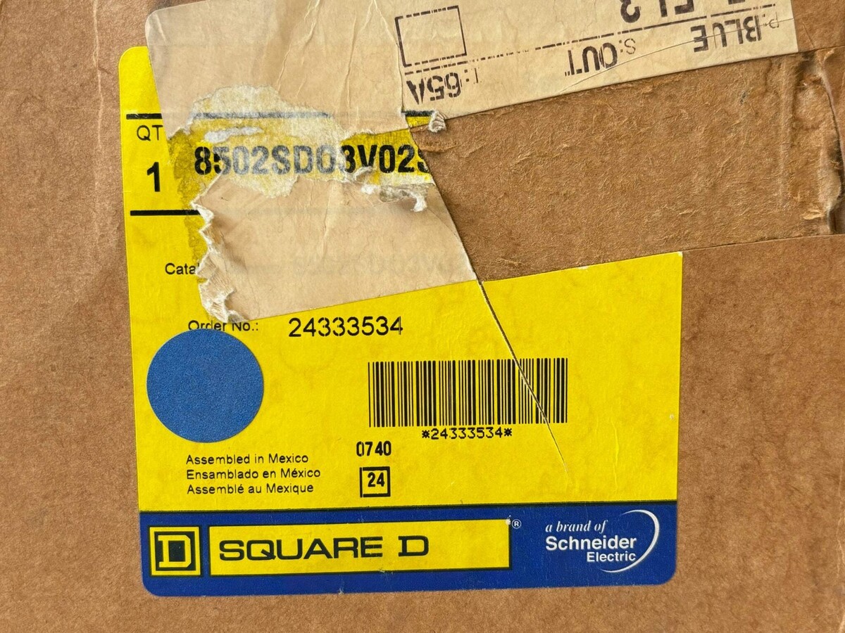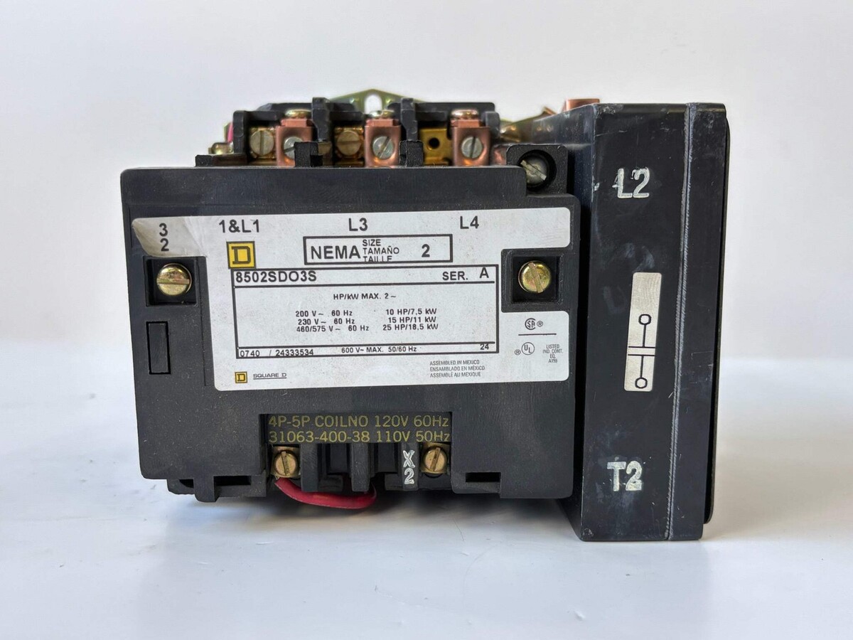Square D 8502SDO3S NEMA Size 2 Non?Reversing Contactor 45 A 600 V New - Open Box Like New The Square D 8502SDO3S is a NEMA Size 2 Type S non?reversing contactor rated for 45 amps and suitable for motor, heating and capacitor switching in industrial applications. It supports voltages up to 600 VAC and is designed for use with separate overload protection. The contactor uses screw?clamp terminals for easy secure wiring and is serviceable with replaceable coils and contacts. It offers a robust design with high short?circuit current rating (up to 100 kA) when properly protected. Ideal for full?voltage starting of three?phase motors or other heavy loads. Listed by: Maksim (Sales Team) ?Don?t dream of winning, train for it!?~ Mo Farah (A positive moment brought to you by Help Resale) About Us Welcome to Help Resale, your go-to consignment shop where value meets quality. At Help Resale, we're dedicated to providing you with an exceptional shopping experience, whether you're looking to find the best deals or consign your items. Need to buy a product, but don't see it in our store? Please feel free to reach out to us and we will help you find it! Help Resale 7200 Fair Oaks Blvd Suite 120 Carmichael CA 95608 Business Hours: Monday-Friday: 9:00 am to 5:00 pm (PST) All product and company names are trademarks TM or registered trademarks of their respective holders. Use of them does not imply any affiliation with or endorsement by them.