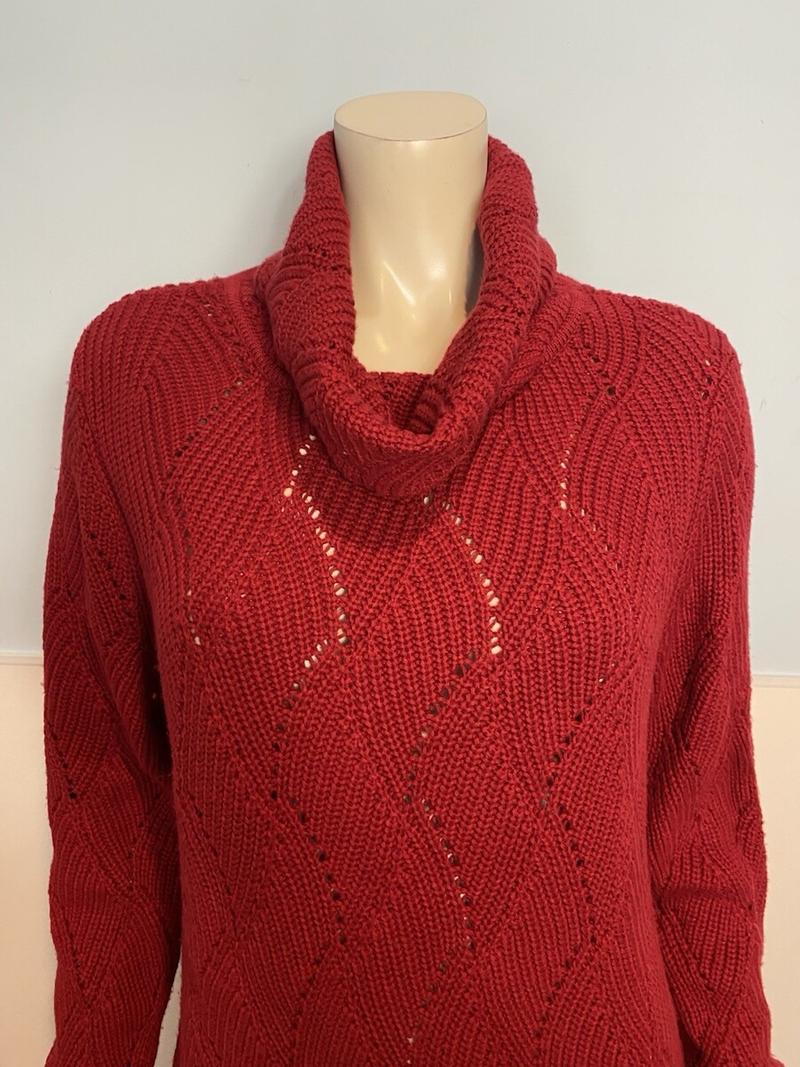Coldwater Creek Red Cowl Neck Long Sleeve Knit Sweater