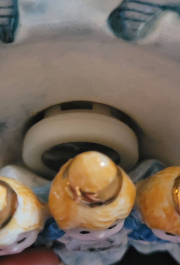 This Christmas decoration is in good used condition. There are no chips or cracks that I found. The music button does not work, possibly needs a new battery.
