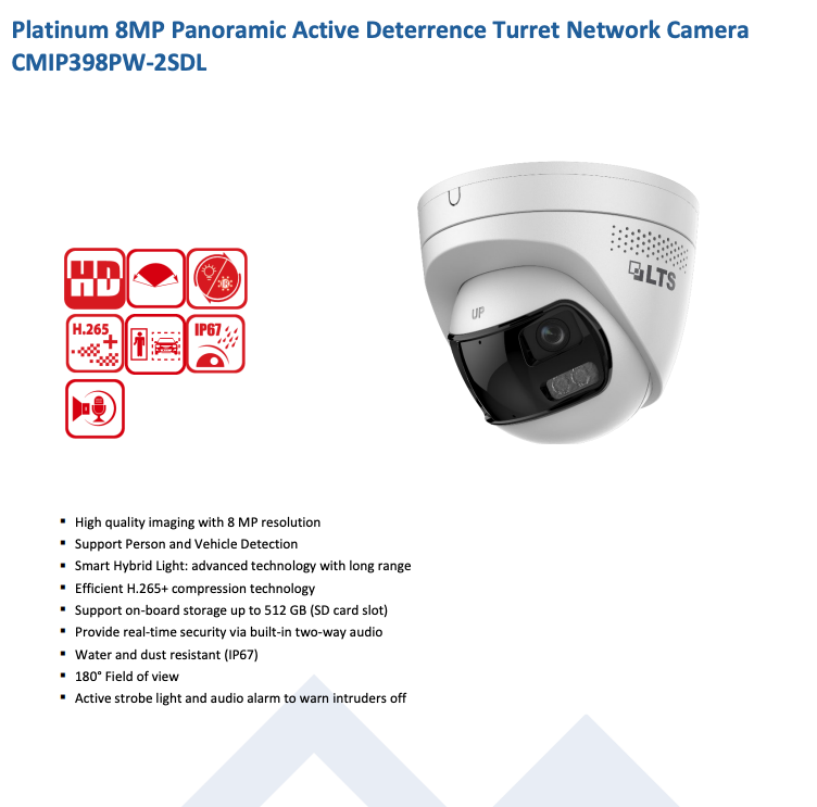 CMIP398PW-2SDL IP 8MP 180 Panoramic Hybrid Light Active Deterrence Dome Camera