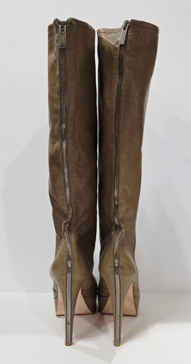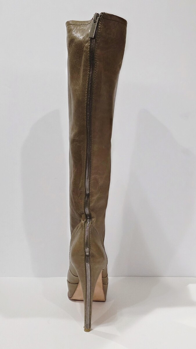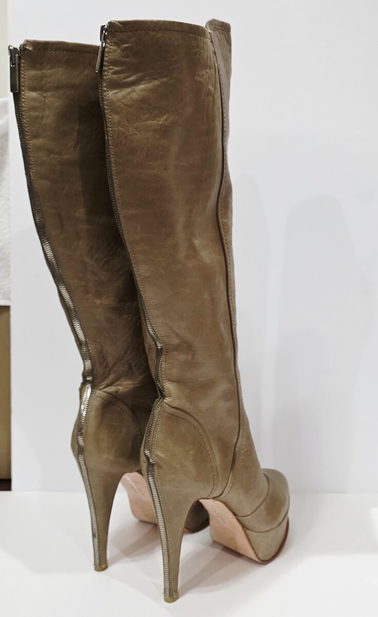 1 New *2 Small Holes and Writing on Bottom Sole from Display, Sticker Residue on Bottom Sole Pair No Box By Dolce Vita TAN BEIGE Leather Boot Knee High Tall Heel Back Silver Zipper Stiletto 10 M Women New! (Box #4)