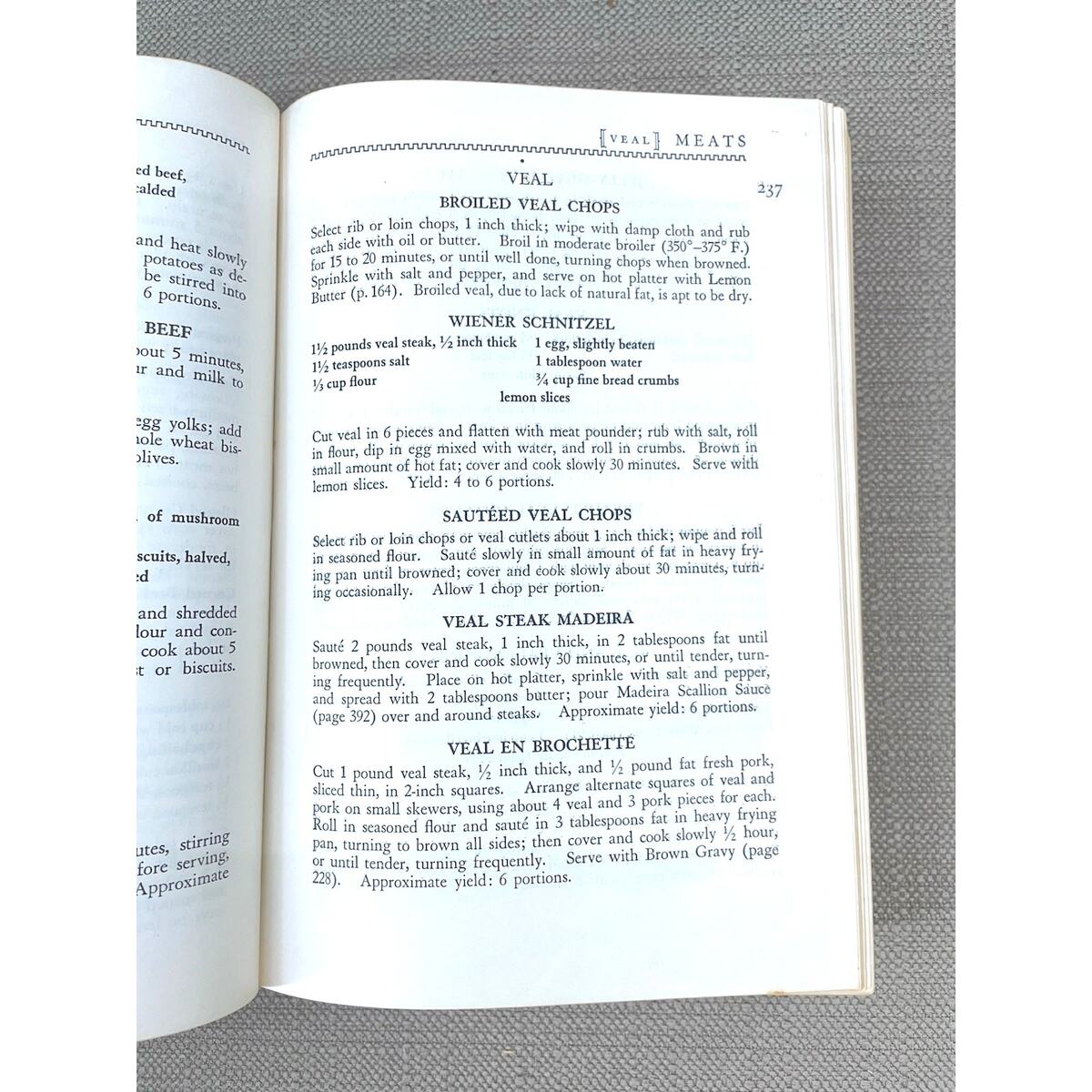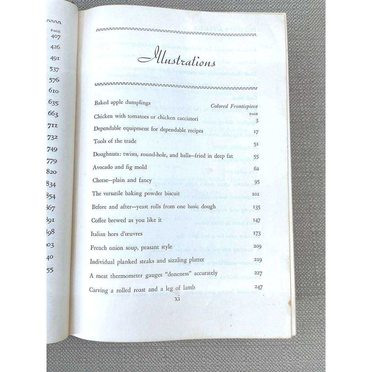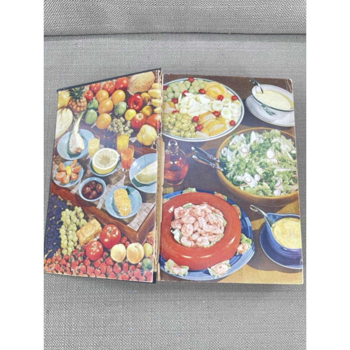 Vintage Cookbook from the Home Institute of the New York Herald Tribune. This hardback edition is in great vintage condition. There is interior front cover separation but the pages are tight and intact. A well-preserved collectible featuring classic mid-century recipes, kitchen tips, and charming period illustrations.