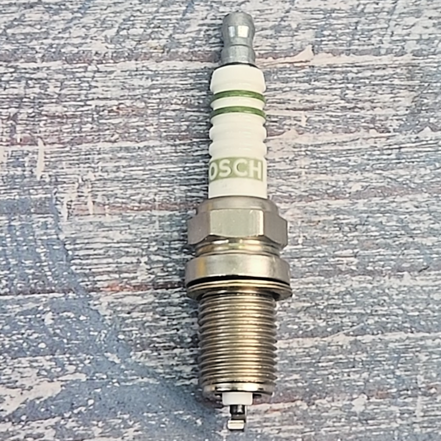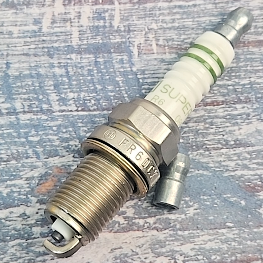 The product is a set of 5 Bosch Super 7553 FR6DCX copper spark plugs designed for Acura, Mercedes-Benz, and Volkswagen vehicles. These vintage spark plugs have a standard configuration, 14mm thread diameter, and a 16mm hex size. Produced in Germany, they are suitable for gasoline engines and have a 12V voltage requirement. Bosch is a reputable brand known for high-quality automotive parts, making these spark plugs a reliable choice for ignition systems in various vehicle models.