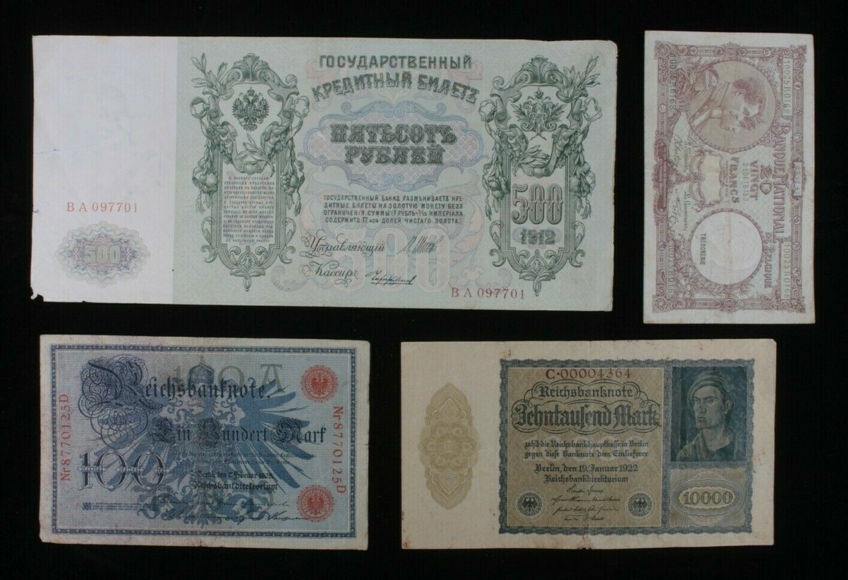 Belgio, Germania e Russia Misc 4-Notes Lot // Franchi, Mark ??Rubles