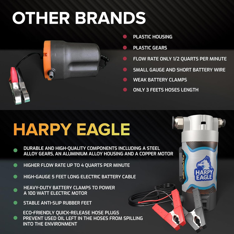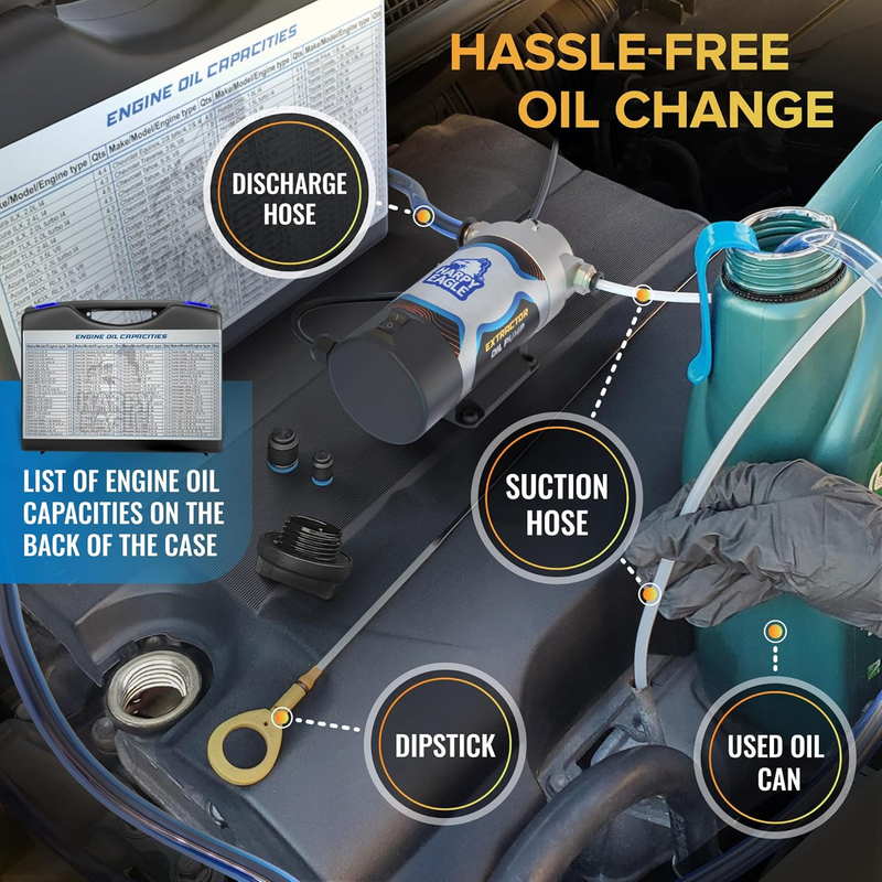 Don't waste time and energy on messy oil changes - make it quick and easy with Harpy Eagle oil pump transfer kit!