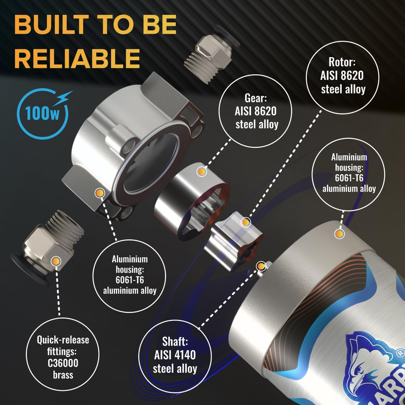 ? Powerful Motor - The oil extractor pump has a powerful 100W motor, which allows it to pump oil up to 1 gallon per minute. We use a rotary engine that is built with high-quality, reliable metal materials and has no plastic parts, making it more efficient and durable compared to others.