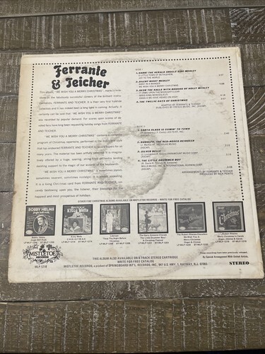 Get into the holiday spirit with the Ferrante and Teicher We Wish You A Merry Christmas Album. This vinyl record features a collection of festive tunes perfect for the holiday season. The album is a must-have for any vinyl record collector and music lover.