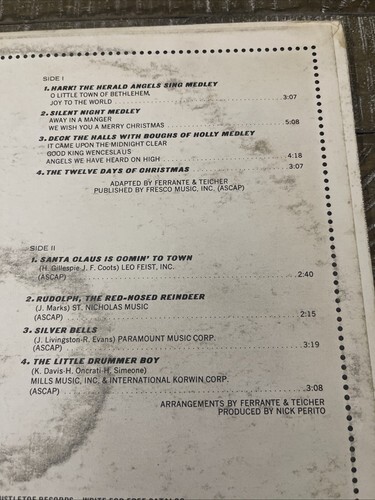 With the smooth and classic sound of Ferrante and Teicher, this album is sure to impress. The record is in great shape and ready to be played, so don't miss out on adding this gem to your collection. Celebrate the holidays in style with this timeless album.