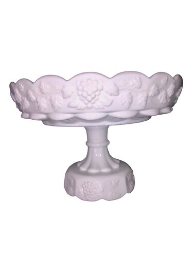 Vintage Westmoreland Milk Glass Pedestal Cake Fruit Bowl Raised Grape Scallop