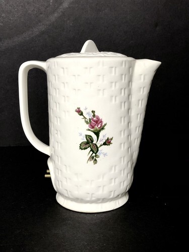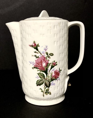 Vtg MOSS ROSE Lobeco Floral Basket Weave Ceramic 4 Cup Electric Tea Coffee Pot