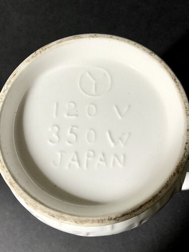 This vintage electric tea and coffee pot features a Moss Rose Lobeco floral design with a basket weave pattern. Made in Japan, this ceramic 4-cup pot reflects Japanese culture in its intricate details and traditional style. Perfect for tea or coffee lovers looking to add a touch of Asian elegance to their collection.
