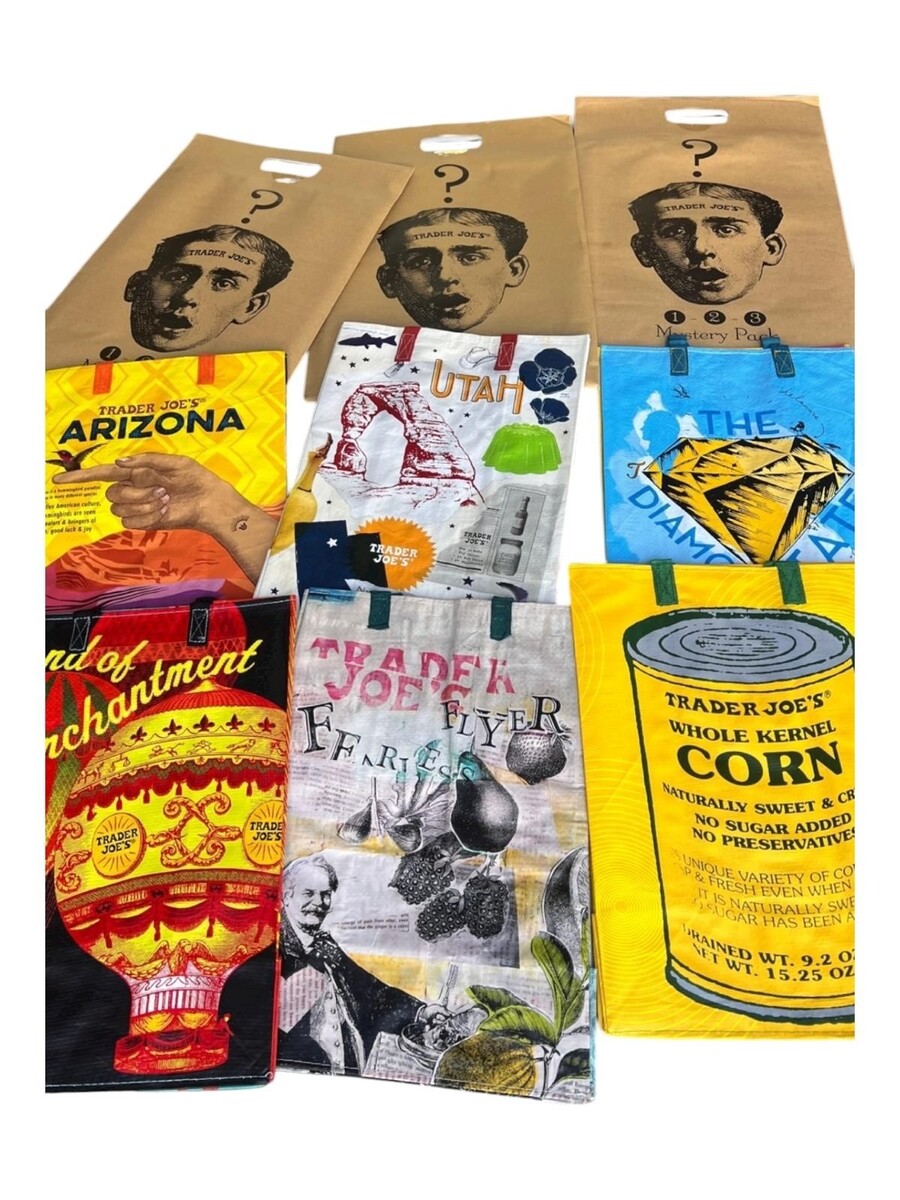 New Lot of 3 TRADER JOES "Mystery Packs” 2024 Shopping Bags Around the Country