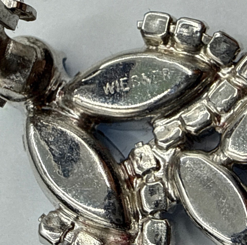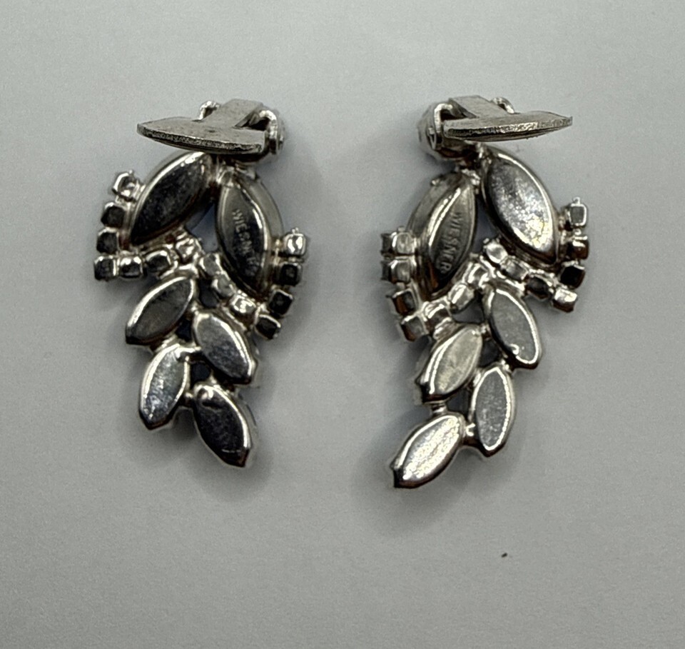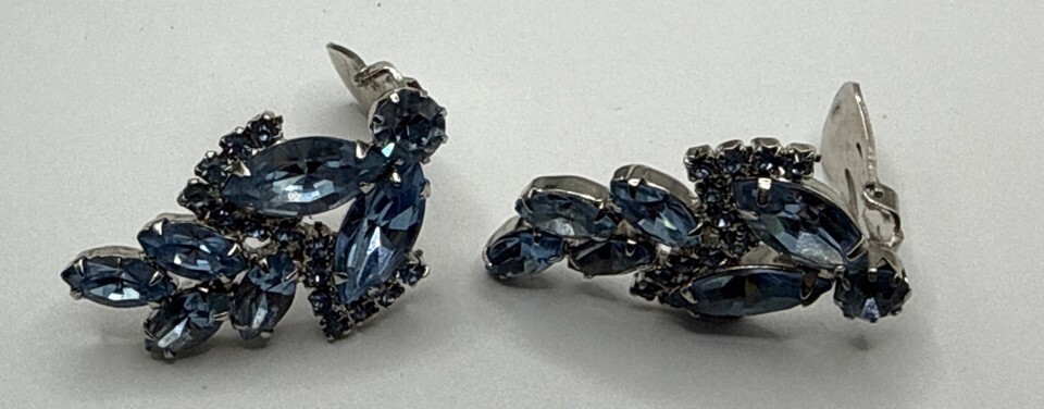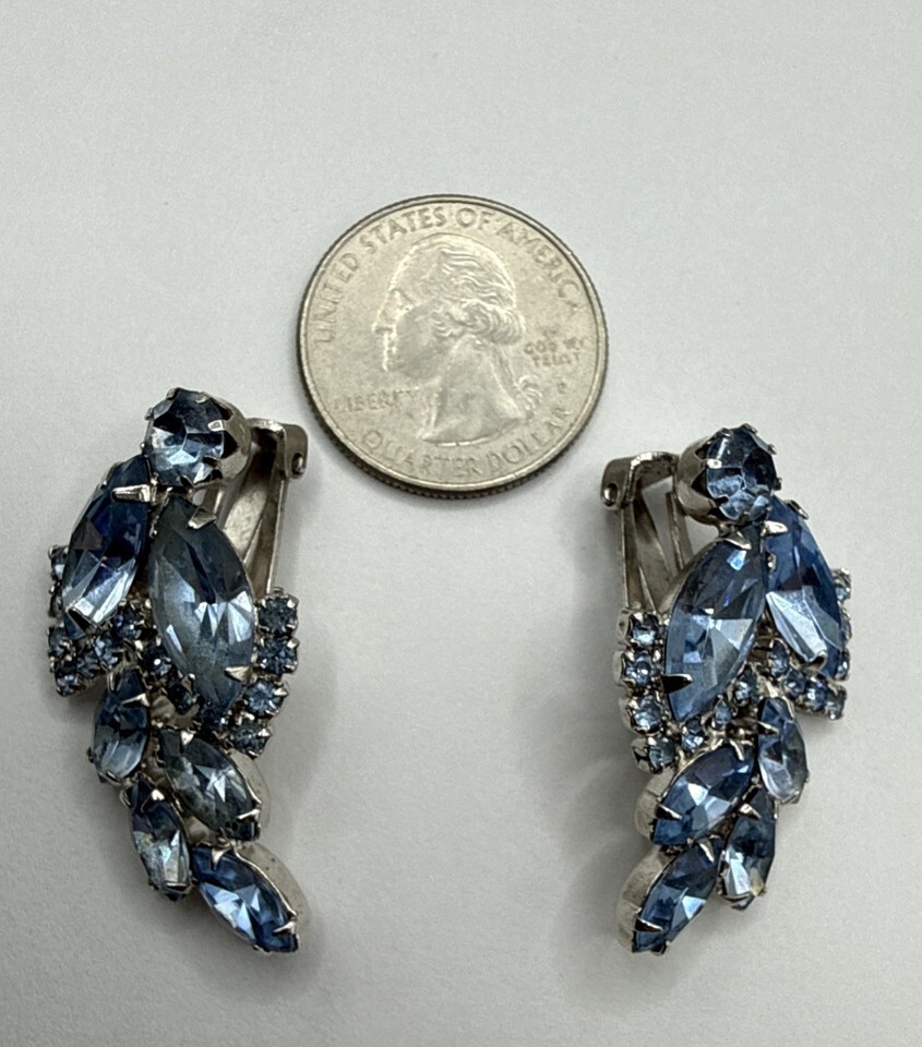 Vintage Wiesner Blue Marquise Rhinestone Rhodium Plated Clip On Earrings