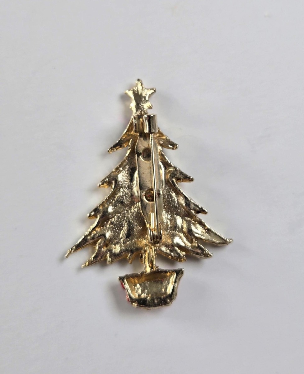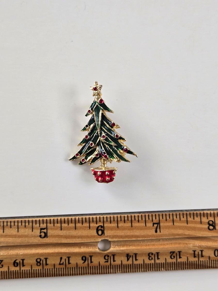 Vintage Christmas Tree Brooch | Red Green Enamel Holiday Pin Jewelry Gift