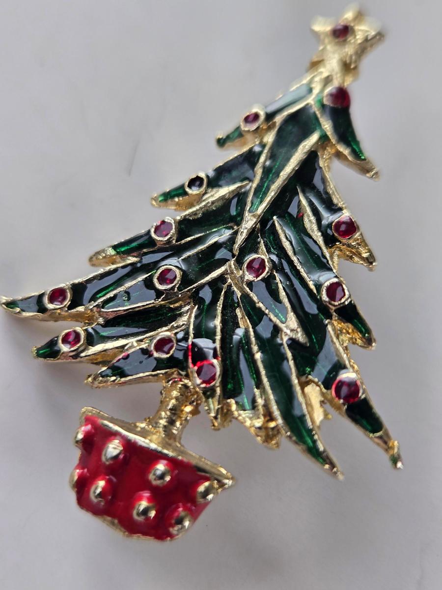 Vintage Christmas Tree Brooch | Red Green and similar items