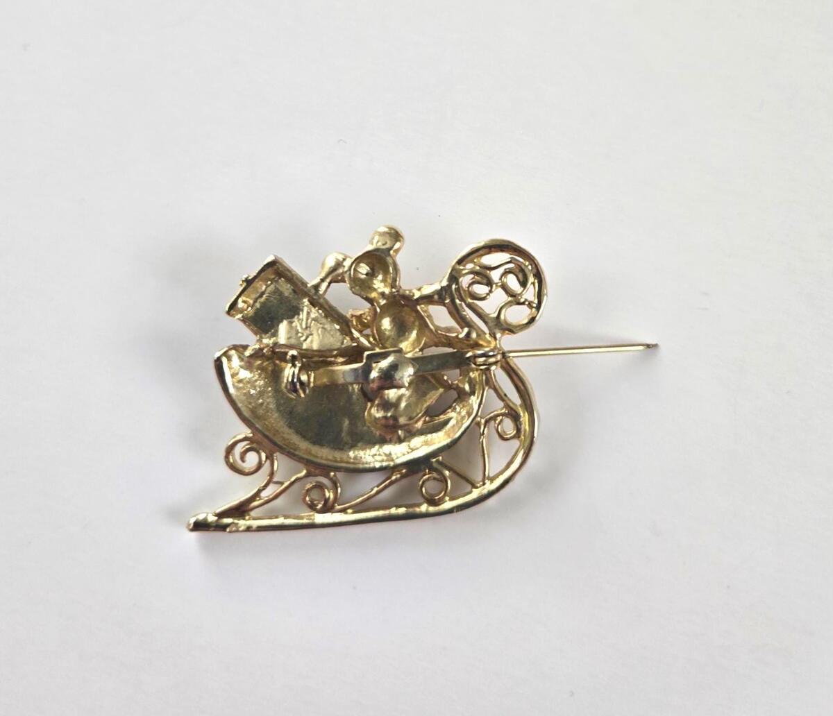 Santa's Sleigh Brooch | Christmas Gold and similar items