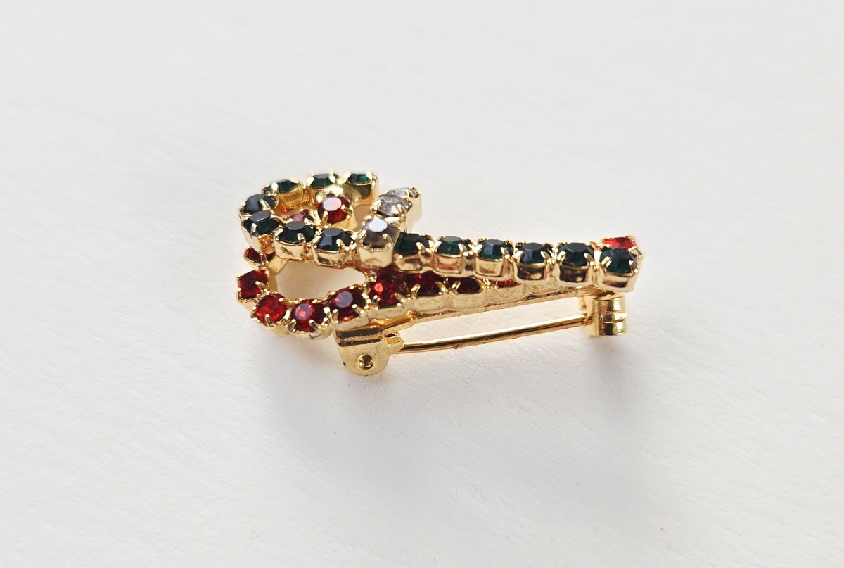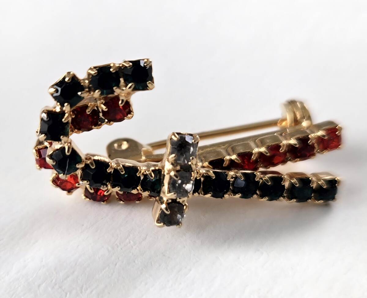 Small Candy Cane Brooch, Rhinestone Crystal and similar items