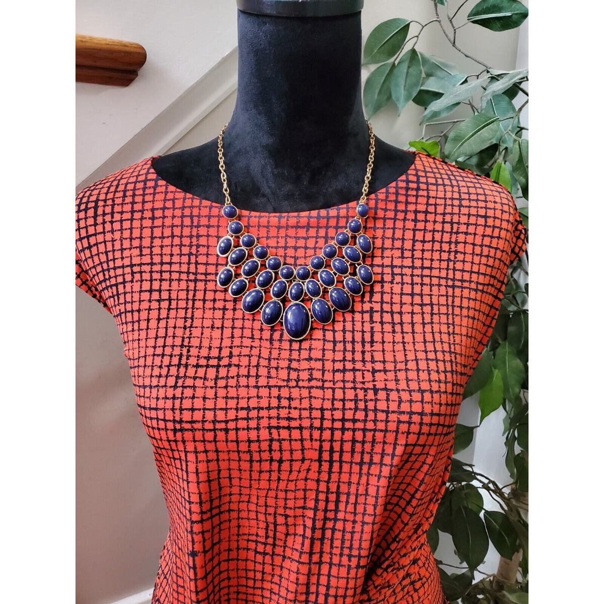 H By Halston Women's Orange Polyester Round Neck Sleeveless Knee Length Dress S