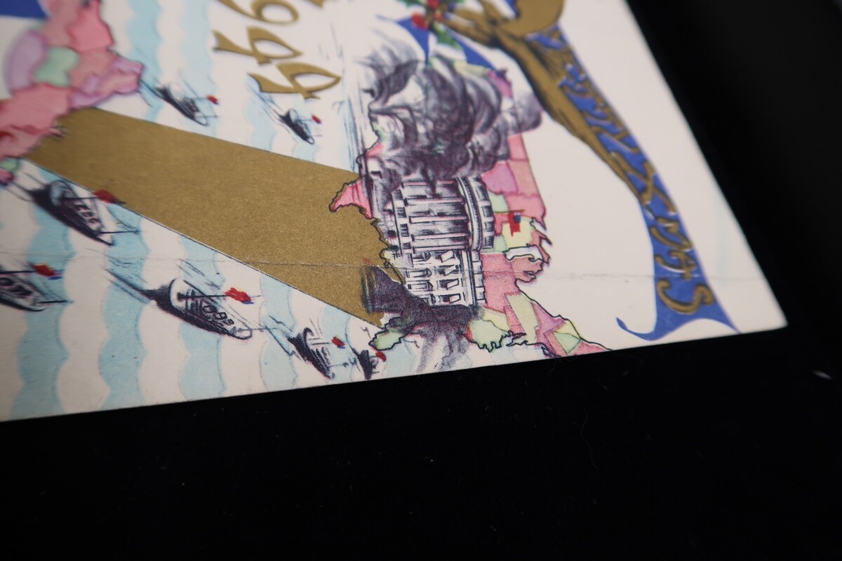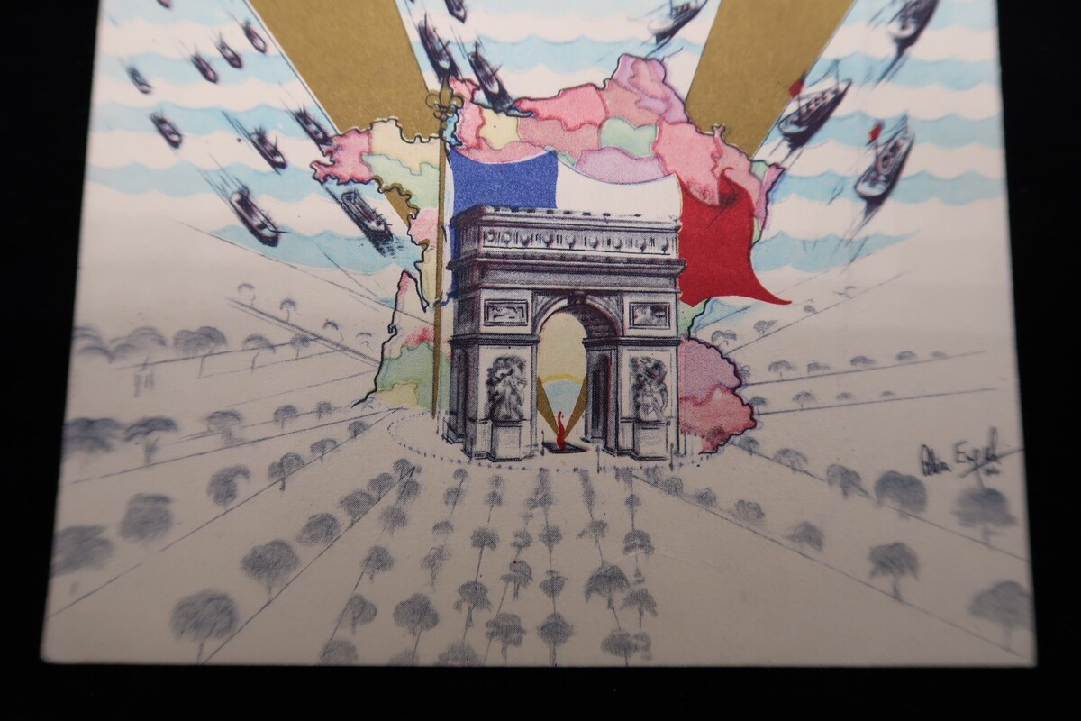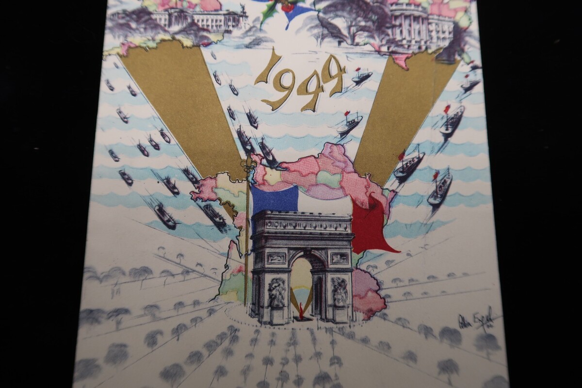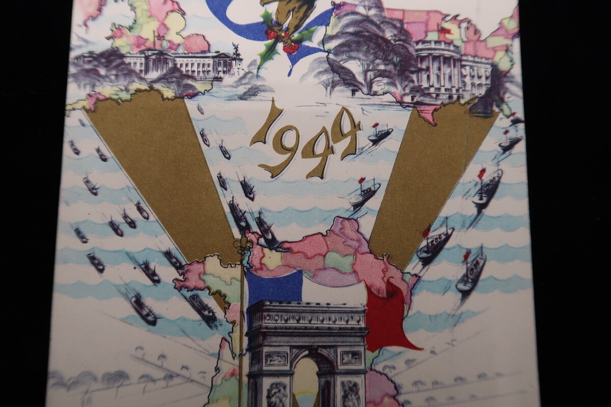Vtg WW2 ALLIES France 1944 Christmas Card Celia Engel History Patriotic NOS Rare