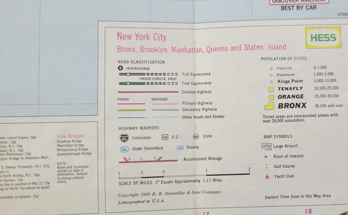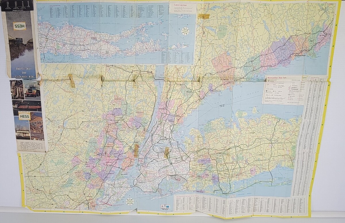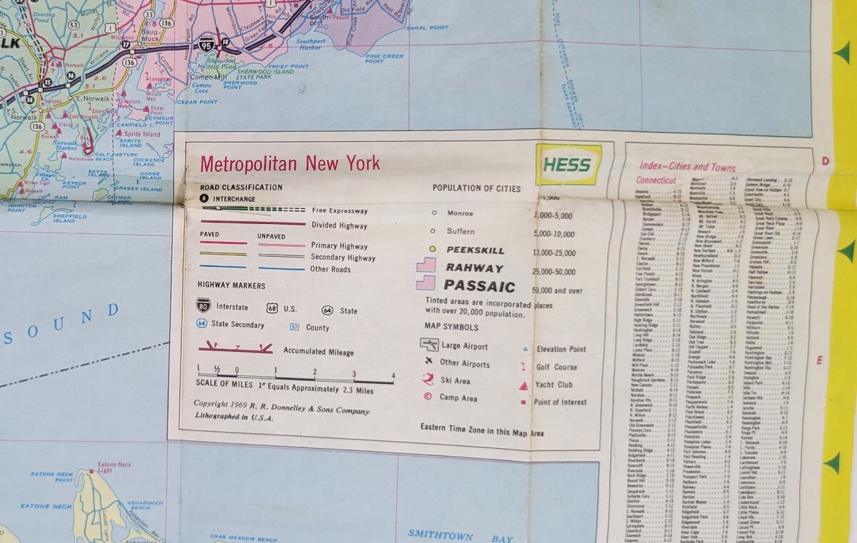 *L2) Vintage 1969 New York City and Long Island Hess Foldable Map RR Donnelley