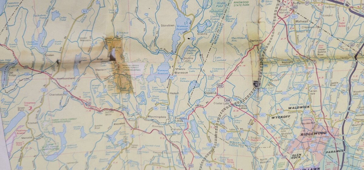 Map is in VERY FRAGILE vintage used condition with some staining, ripping and splitting at the folds.
