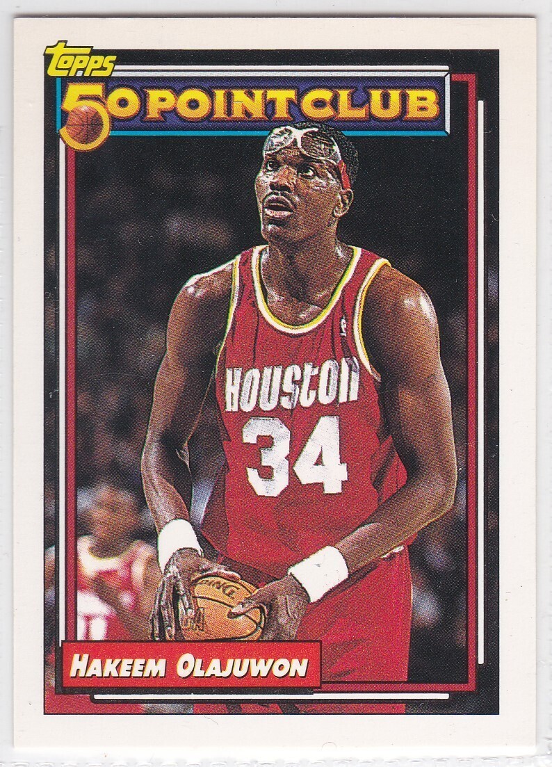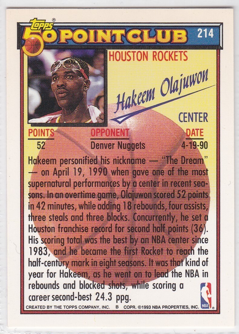 M) 1992-93 Topps Basketball Trading Card - Hakeem Olajuwon #214