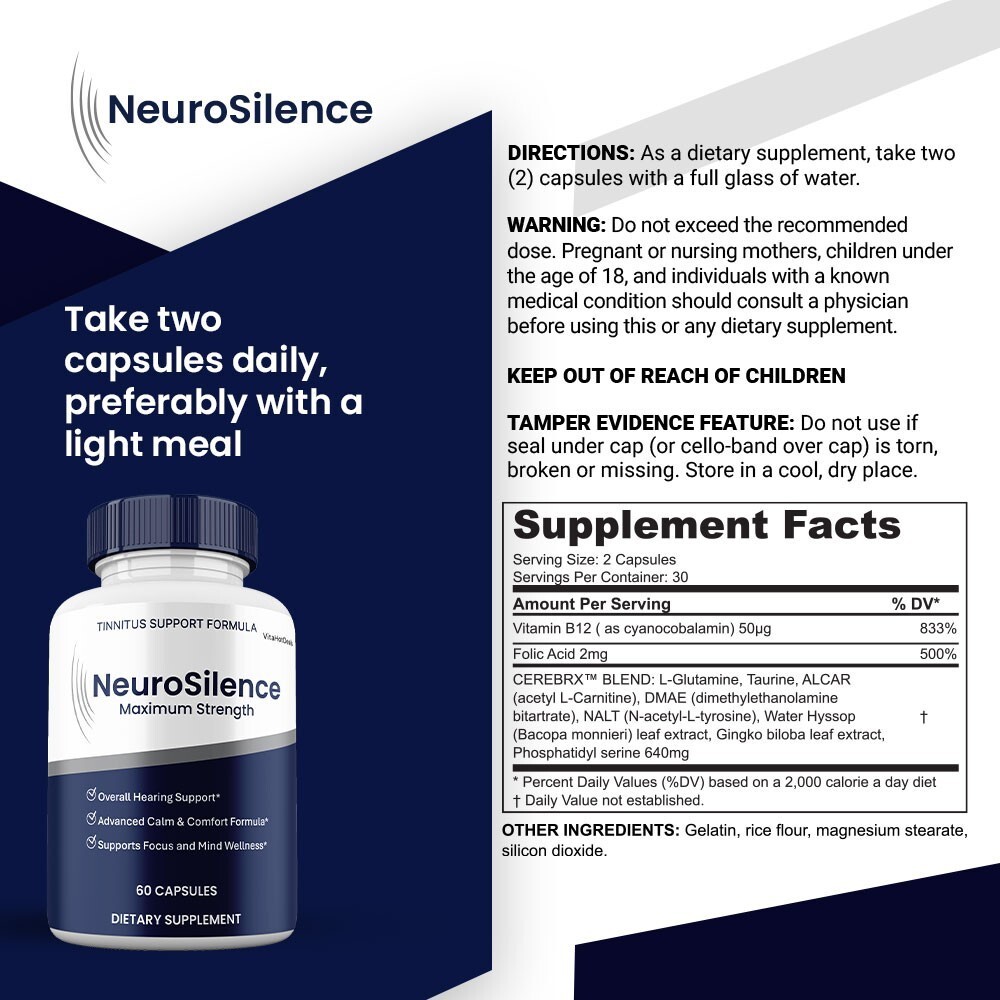 Neuro Silence Capsules, Max Strength, NeuroSilence Supplement (1 Pack)