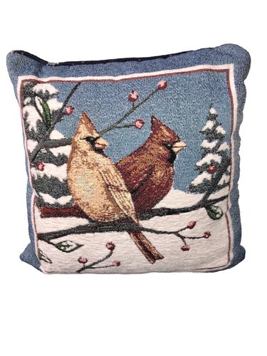Vintage Double Sided Tapestry Pair Cardinals Throw Pillow Winter Scene 15”x15”