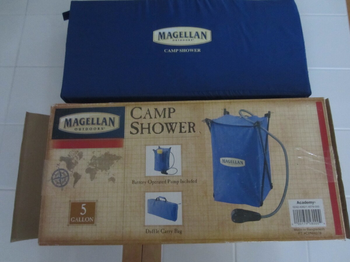 Magellan Outdoors Camp Shower Kit New w/box. Features: Battery Operated Pump, Duffle carry bag and 5 Gallon . Comes with everything pictured. If you have any questions, Please Email the Seller. Shipping will be $13.50