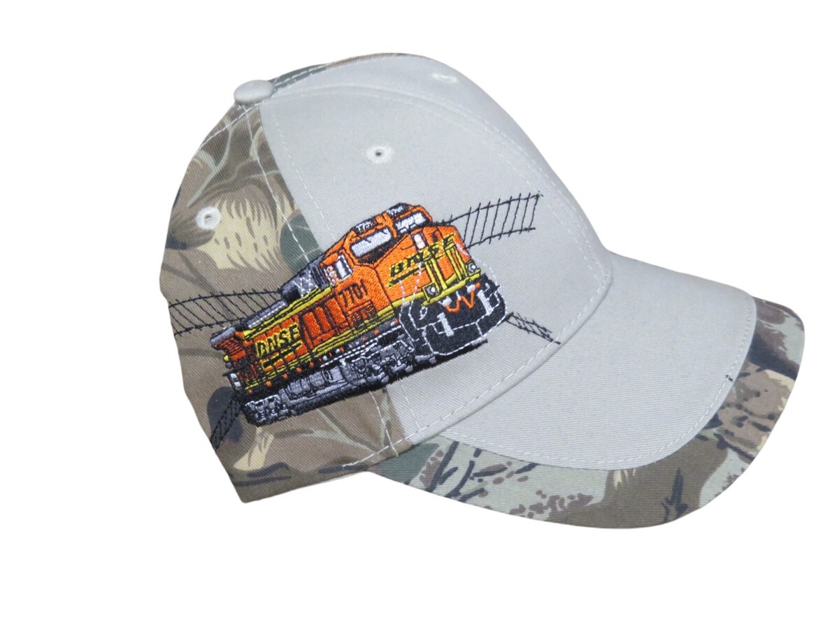 BNSF Railroad Engineer Adjustable Hat Cap Mesh Camo Khaki Train Decal