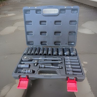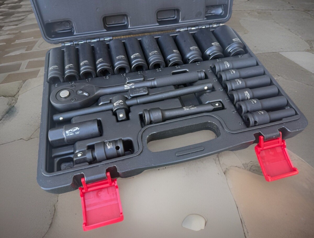 Tackle tough jobs with confidence using this professional-grade 1/2? Drive Impact Socket Set. Engineered from durable CR-MO steel for maximum strength and high impact resistance, this 43-piece kit includes both deep and shallow impact sockets, a 72-tooth ratchet, extension bars, ? everything you need for high-torque tasks. Whether you're in the garage, shop, or out on the job site, this heavy-duty mechanic tool set is built to perform under pressure. Perfect for working with impact wrenchs, or 1/2? impact guns, this set handles lug nuts, bolts, and tight fasteners with ease. The included socket organizer and rugged carry case keep your tools secure and accessible wherever you go. Whether you're building a full socket wrench set or upgrading your wrench set, this complete tool set is the reliable choice for any professional or DIY enthusiast. ? Engineered for Strength. Built for Performance.