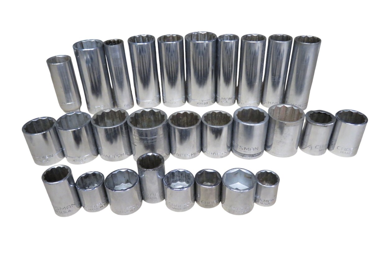 Vintage Craftsman 12 Point SAE 1/2? Drive Socket Set =V= Series LOT OF 28