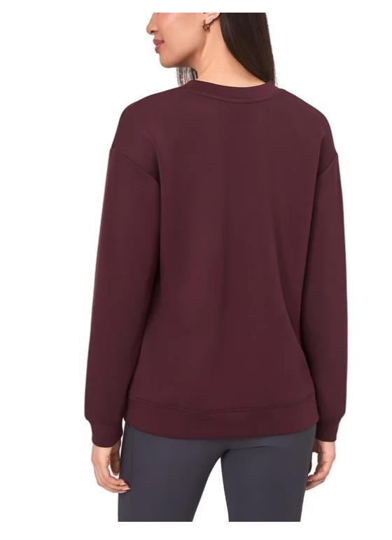 Mondetta Womens Sweatshirt Dark Red Crewneck Stretch Pockets Fleece Active Cozy