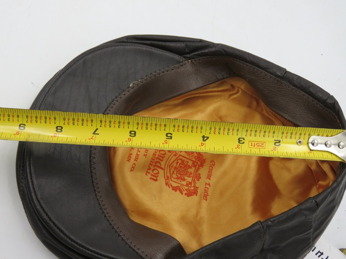 Vintage Brown Leather Newsboy Flat Cap London Imperial Golf Hat 7.5 x 7 In