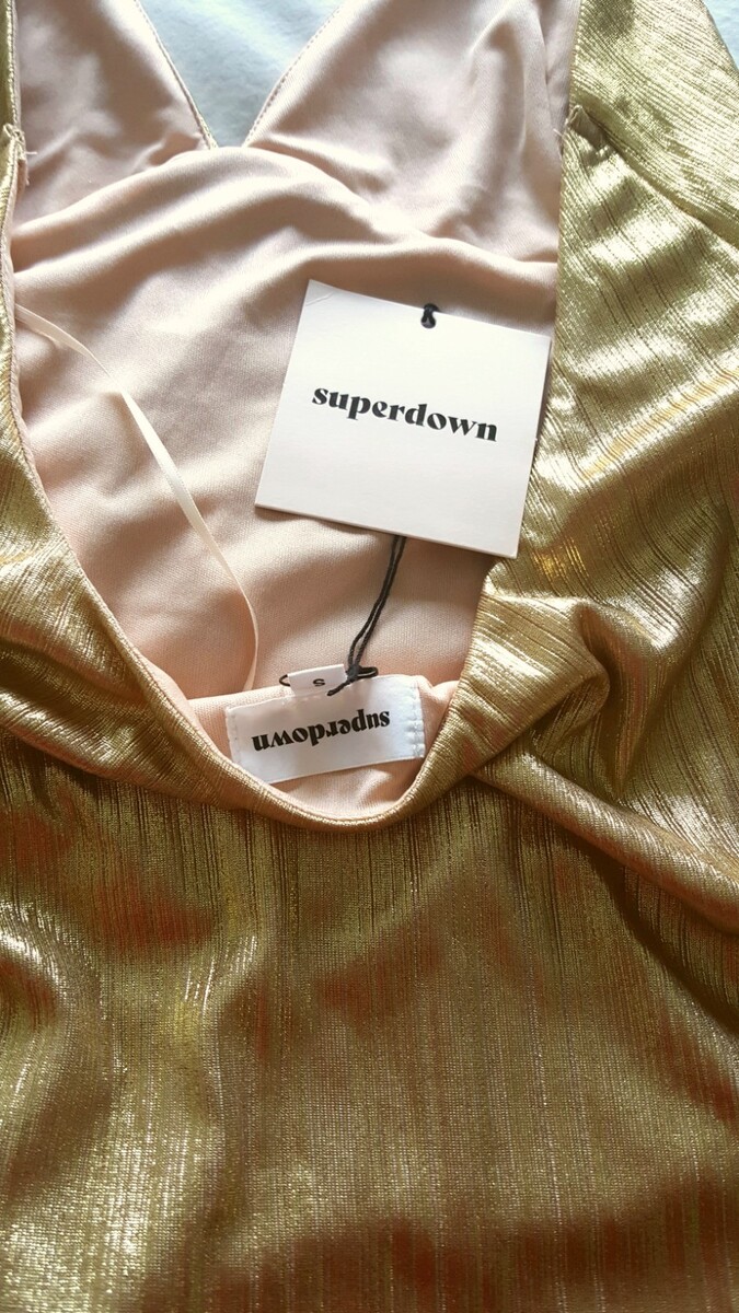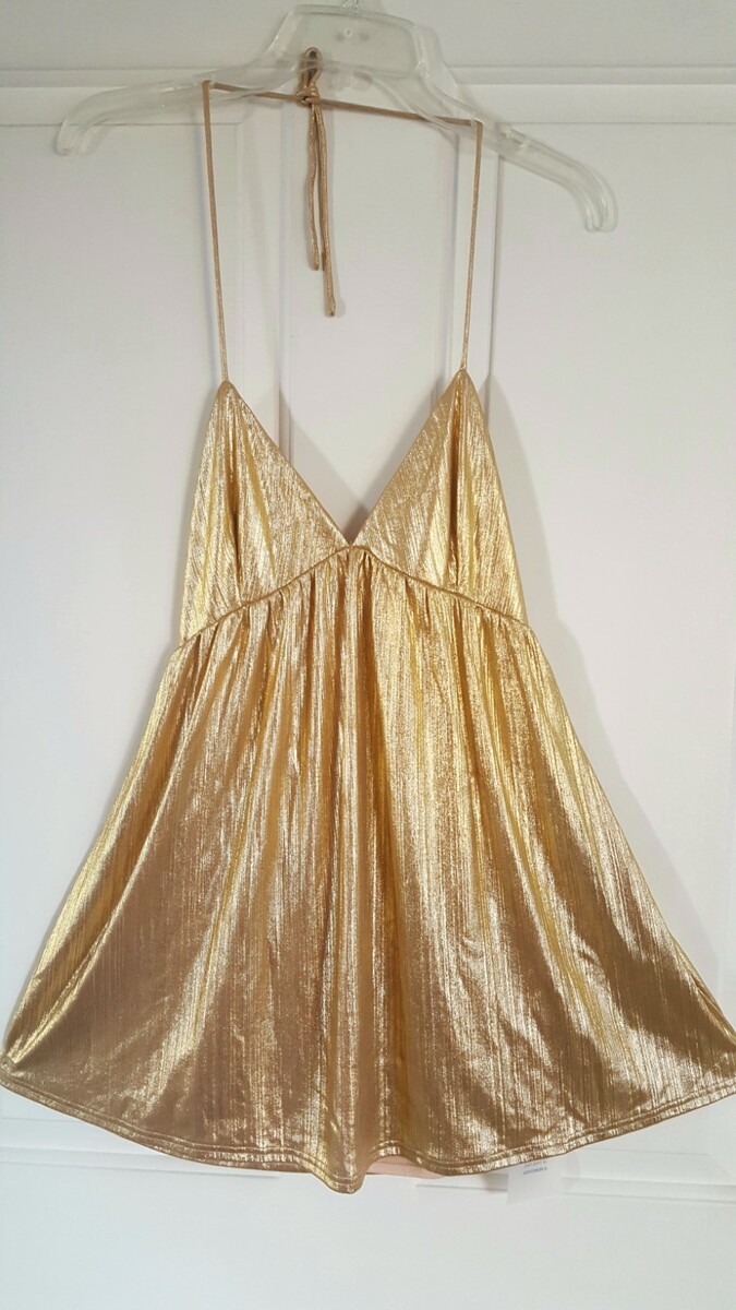 NWT REVOLVE Superdown Margo Halter Mini Dress - GOLD Metallic Lame - Size Small