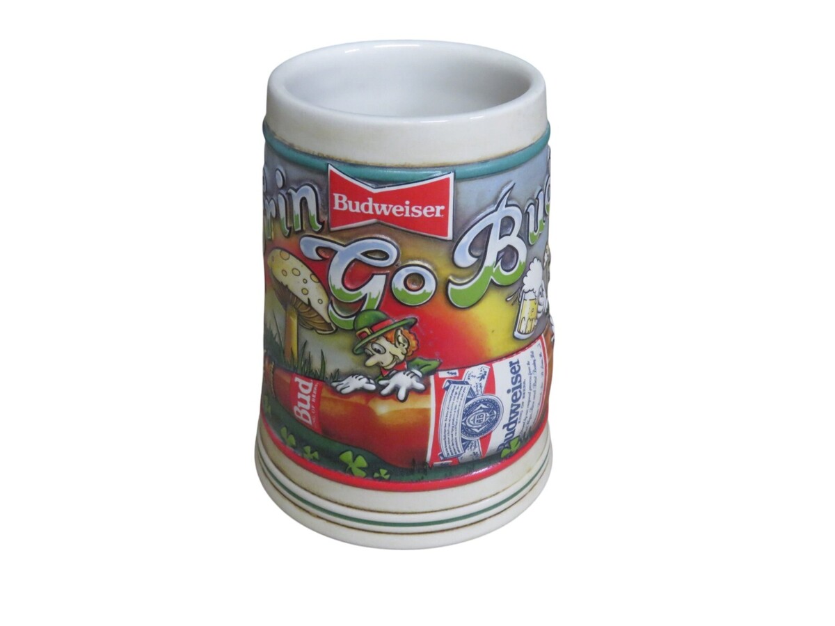 VTG Budweiser Erin Go Bud St. Patrick?s Day Beer Stein ? Leprechaun Mushroom