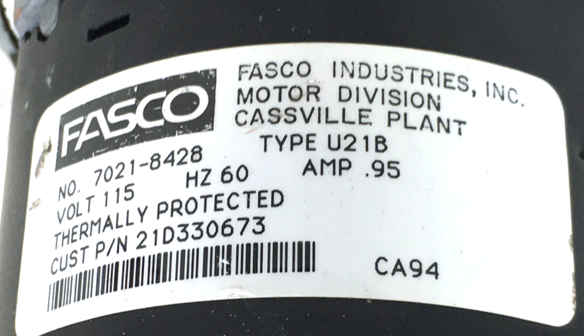 This is Fasco Draft Inducer Assembly 7021-8428 21D330673 115V used part.